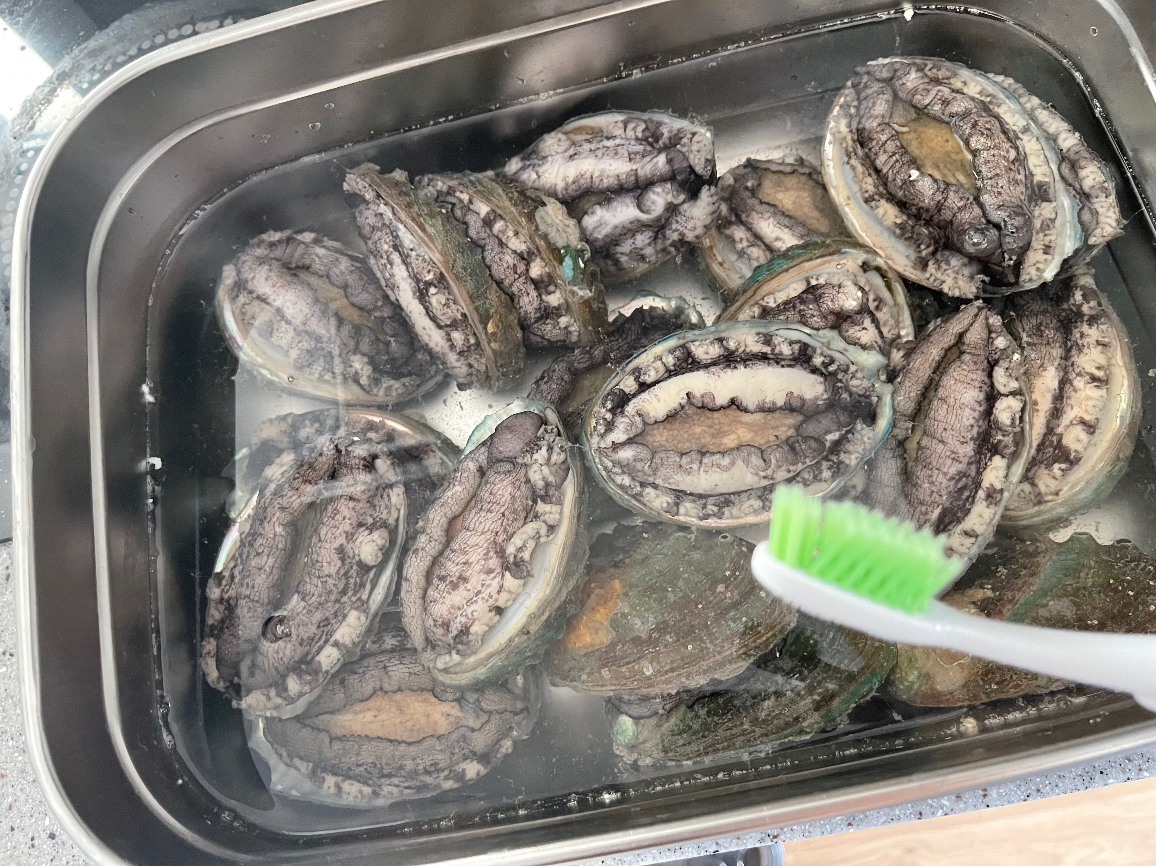 전복끼리도 서로 붙어있어서 떼는데 힘들었다